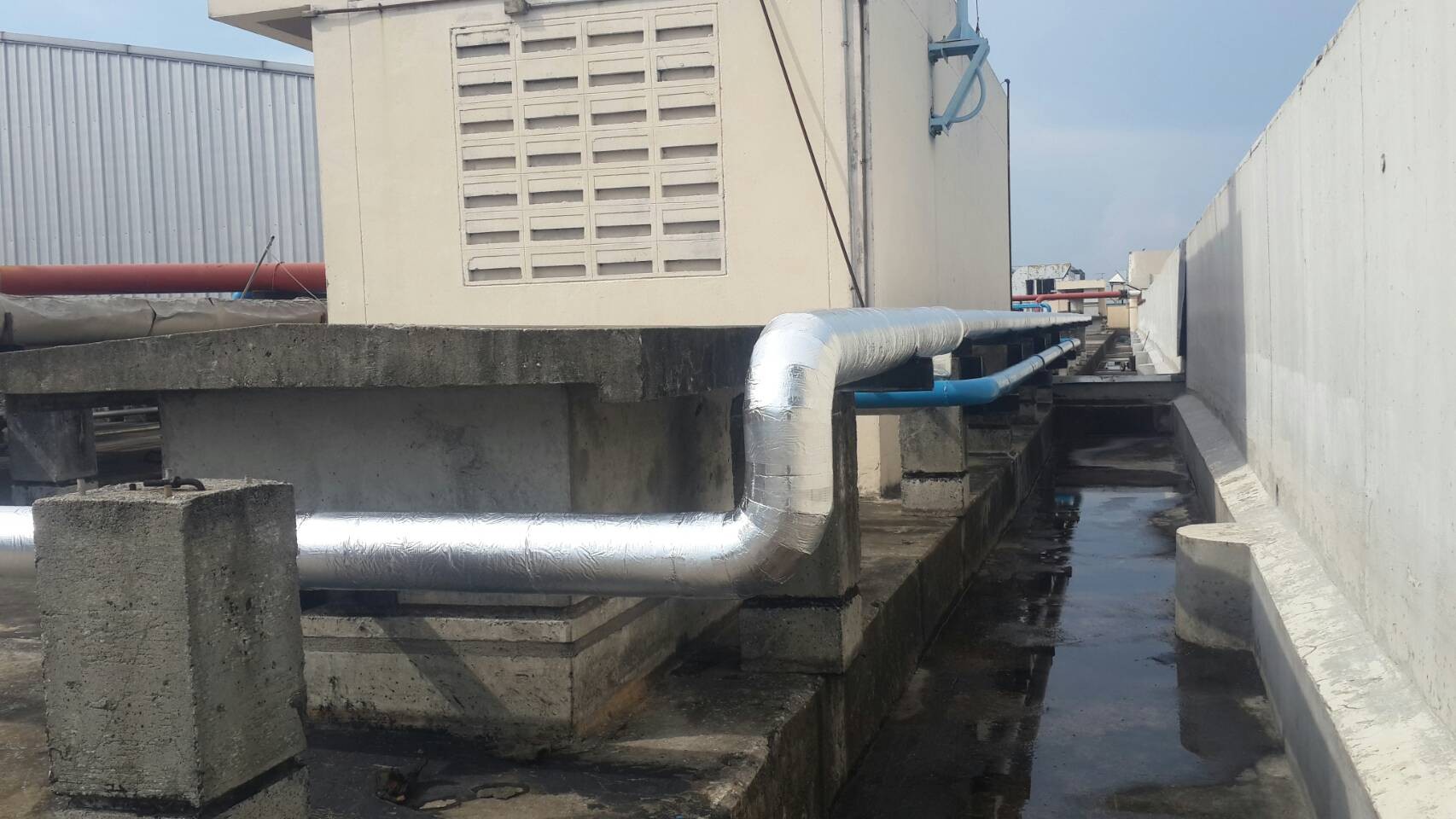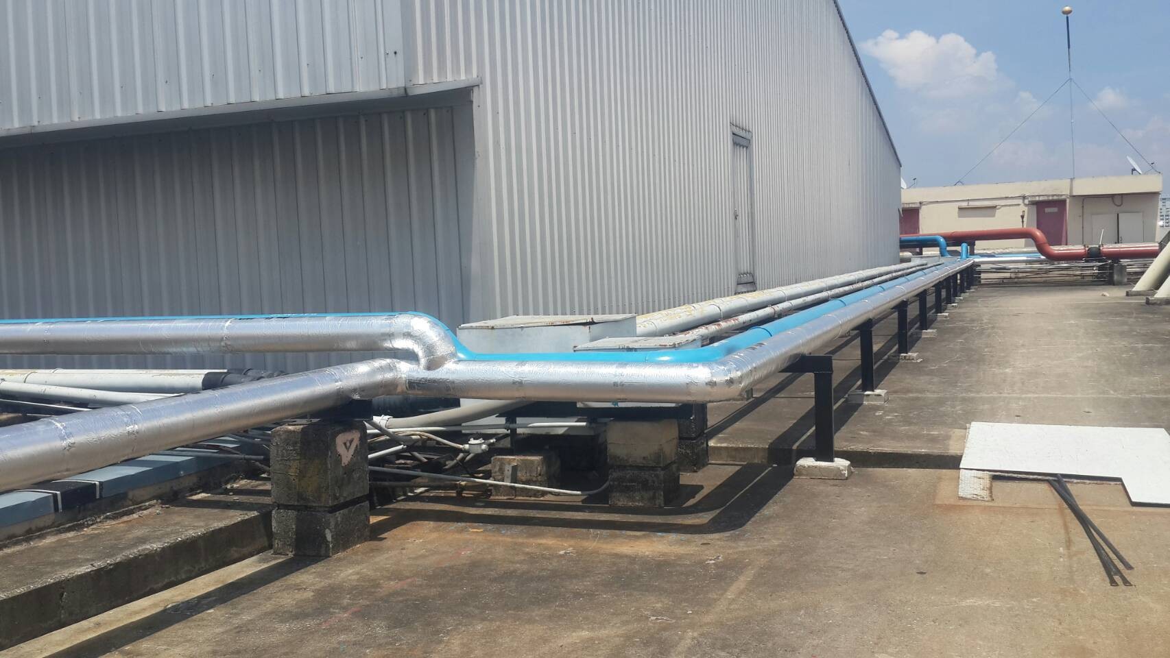 รายละเอียดโครงการ : ติดตั้งฉนวนท่อน้ำ SOFTLINK ปิดผิวด้วยฟอยล์ TechnoClad สำหรับการใช้งาน Outdoor